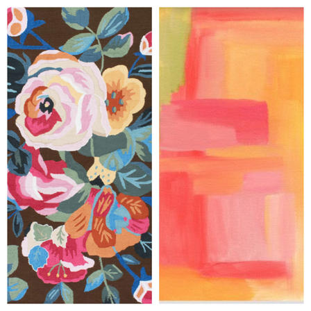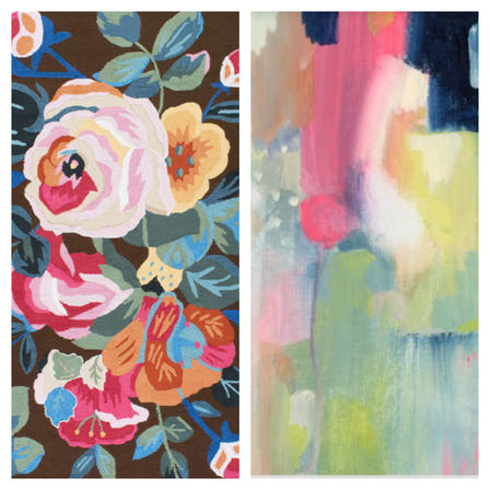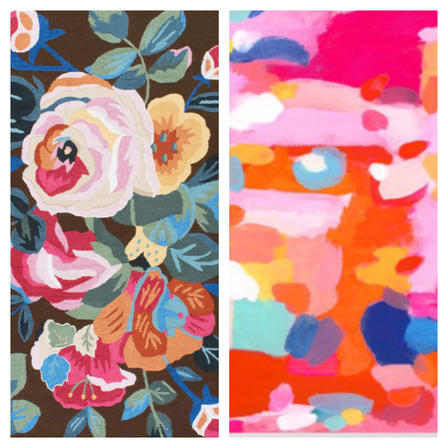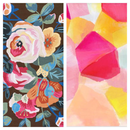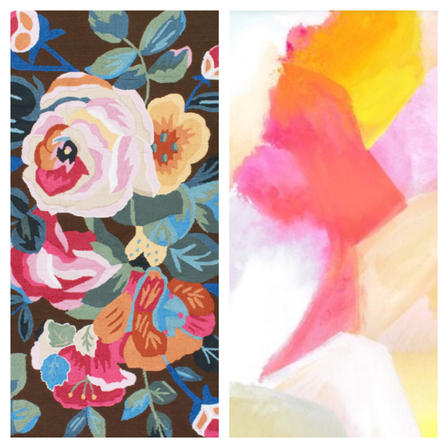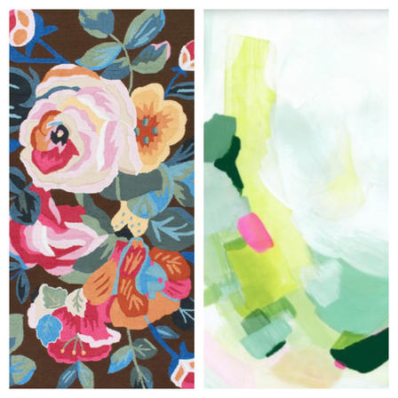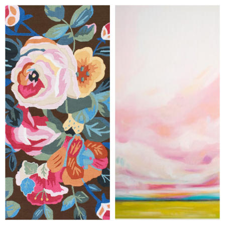 Let’s talk about art. If you follow me on Instagram and watch my videos, you know that I was struggling with art. Here’s why: I’M OBSESSED WITH MINTED. Their selection is SO good, and since I love everything, it was making it hard to decide. Inevitably, I was drawn to the predominately pink piece that’s in the mood board, but here are the others I was considering side-by-side with the rug. Let me know your thoughts! Is there one you like better? I’ve linked them all underneath so you can see the full view of the painting, and shop for that matter! Maybe one of these works for YOU!