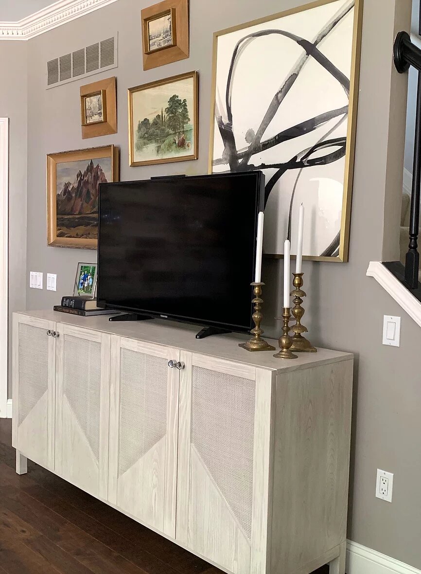 While at High Point Market this spring, I was introduced to A.R.T. Home Furnishings. Shortly after I came home, I spent time diving into their website and loved their selection of furniture! So I’m thrilled to collaborate with them for a GORGEOUS spot for our tv! Check out this credenza! …
