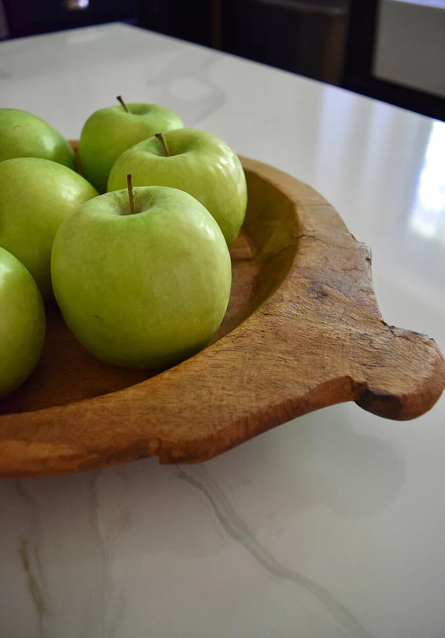 Did you know that Art Van has a whole section of one of a kind pieces? Lots of cool treasures! I found this unique wooden tray/bowl and thought it’d be such a warm touch to my black, white, and gold kitchen! Filled it with green apples and absolutely love it. And it’s versatile… I can easily throw this on the coffee table and maybe fill it with moss balls or other decorative accents.