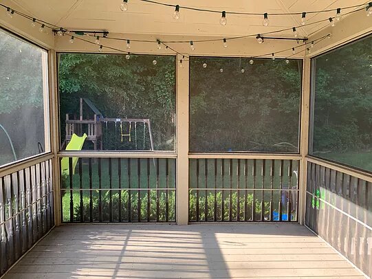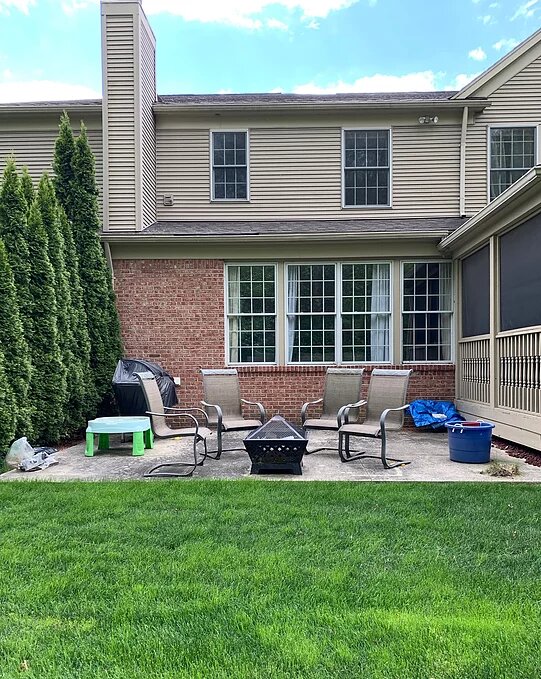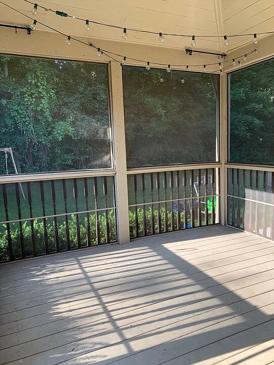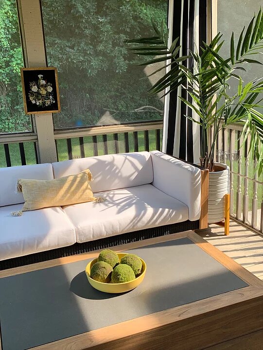 Hey, guys! Finally sharing our outdoor spaces with you today! If you’ve been following me for a while, you’ve seen our back/screened-in porch before. I’m so happy we finally invested in high quality furniture to fill the space! Lloyd Flanders was definitely the way to go! They were part of the Design Blogger’s Tour I did at High Point Market. I was blown away by the craftsmanship and really loved the design of a few particular pieces that I tucked away in my head for when outdoor planning came about this summer. I knew I wanted a large sofa and coffee table for my screened-in porch, and a dining set that could fit my big family of six for the concrete patio we have adjacent to the porch. That area was a whole separate beast of a makeover! A dirty, neglected mess that I’ll share with you below! Let’s start with the porch. This is what it looked like cleared out of old, dingy furniture that was too small for us…