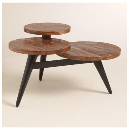 The coffee table is still up in the air. I brought home a lovely charcoal tufted rectangular ottoman with brass nailheads, but then I decided I think round is the way to go. Also wasn’t sure if I wanted a tufted ottoman next to a tufted couch, and I started to think I actually want a coffee table instead of an ottoman! Hubby thinks kids are still young and we should play it safe (he has a scar on his eyebrow to prove it) but I say having a round one will help with that- no sharp corners! And truthfully I’m tired of an ottoman being used as a jungle gym! They are constantly jumping off of our current one. Having a table instead will stop that, and it’ll be nice to have a hard surface to set things on. I’m liking these in addition to the one on the mood board…