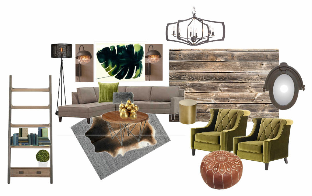 It’s got an industrial vibe but has hints of gold on the edges that I’m digging. I’d like to add touches of gold throughout the room. I’m all about mixing textures and finishes. Just because you have a rustic wood wall going up, doesn’t mean it can’t be glamorous!