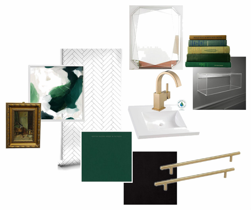 I love this shelf because it gives me an opportunity to display a few things on top, but more importantly, I’m going to fill the lower part with some of my green vintage books:) I just can’t resist! They’re creeping their way into every room in the house, and I’m not mad about it. Just a fun dose of green to match the art. What I love about this plan, is that as much as I LOVE color, the foundation of this bathroom is a simple black, white, and gold plan. Art and books (and even the paint on the lower part of the walls) can be switched out whenever I’m in the mood for new colors:)