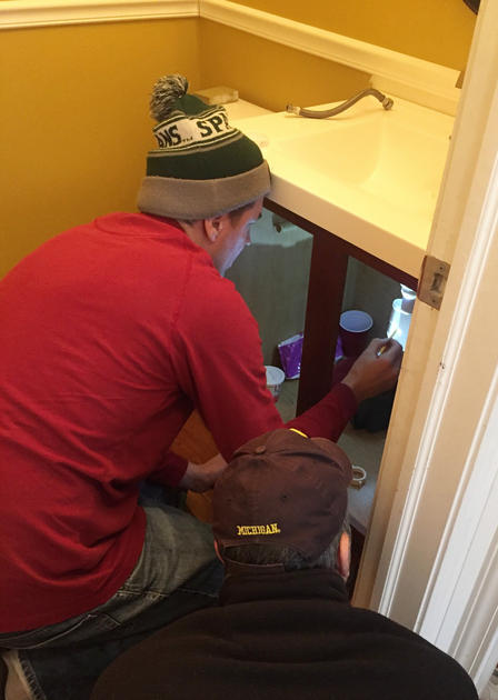 I’m super excited about how easy this will be to clean. I love that the sink is integrated! Not a fan of under-mount sinks, to be honest. We actually installed this on New Year’s Eve! My sweet brother-in-law came over with his family and helped us demo and replace that old sucker!