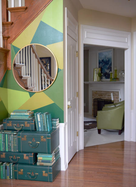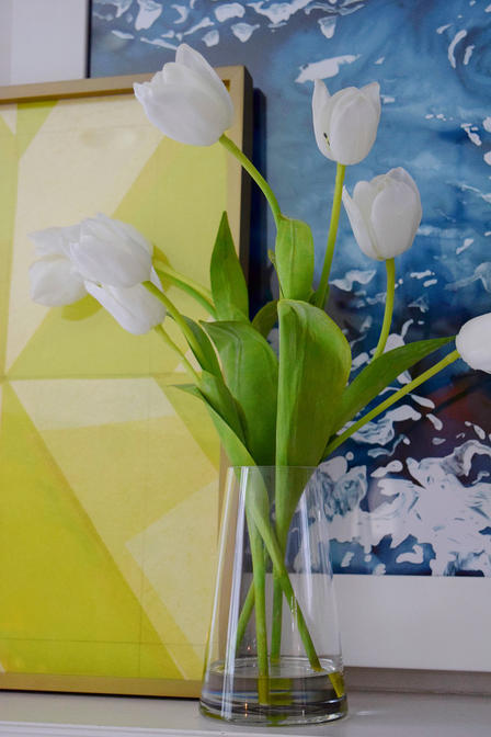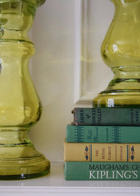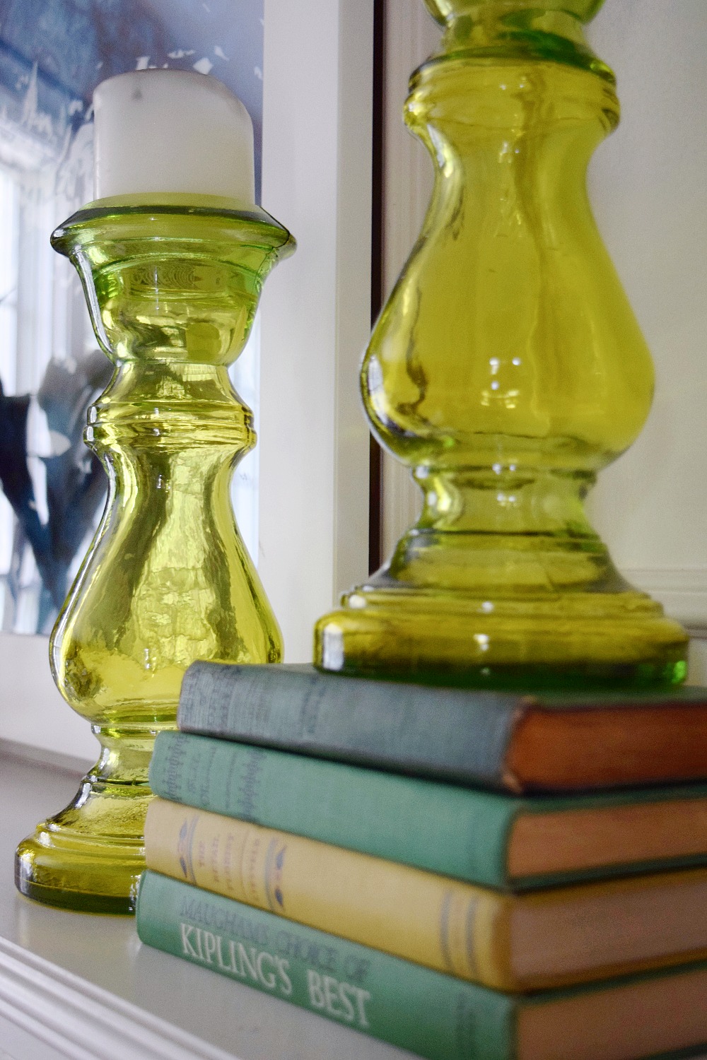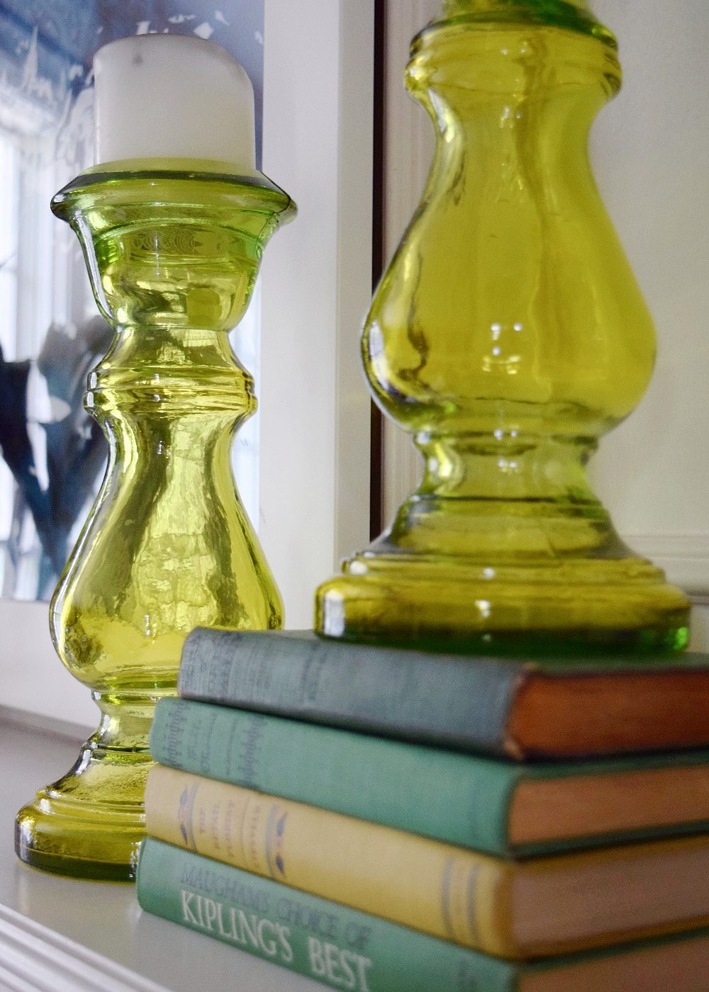 Here’s a view from the foyer. I like how my new foyer walls (view that before and after HERE) play nicely with the greens in the new candlesticks, and the art from Minted that I moved in from the living room (you can see that refresh in my most recent Spring Home Tour HERE).