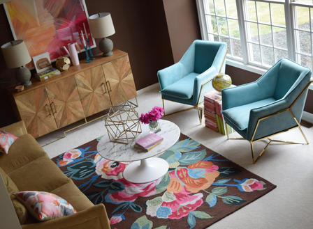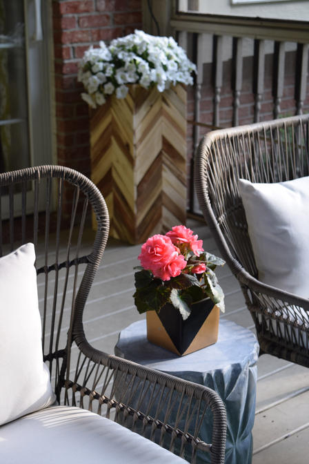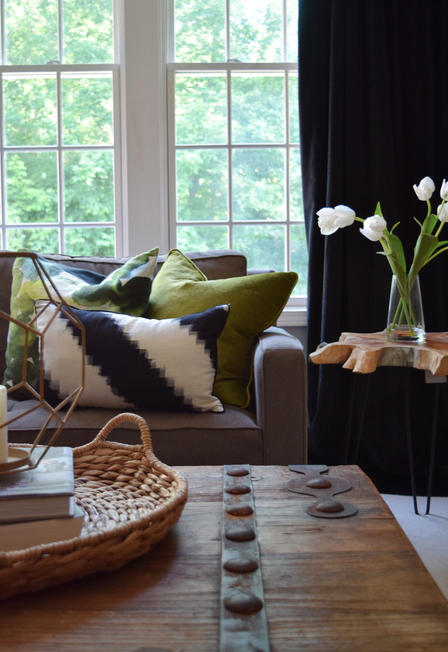 One other small DIY was changing up the look of the small black/gold planter. I found it at Hobby Lobby as faux concrete and gold, but the color of the “concrete” clashed a bit with the color of the end table it’s sitting on, so I painted that part black instead. I love it! Brings out the black from the drapes on the other side of the space.