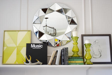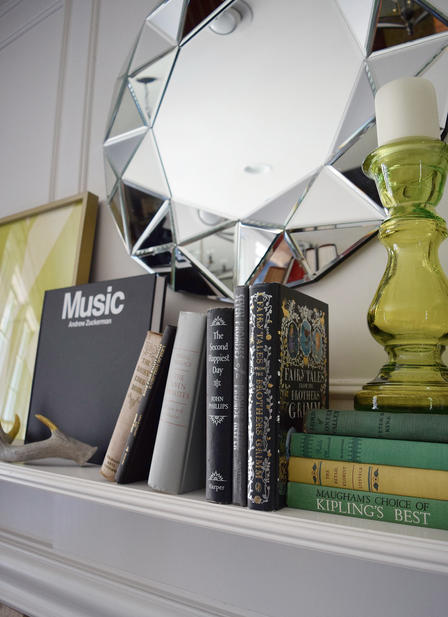 Ok, here’s a few quick pix of a family room refresh! Brought in black, velvet drapes, recovered the bench (for the 100th time!) and found a new faceted mirror for the mantel.