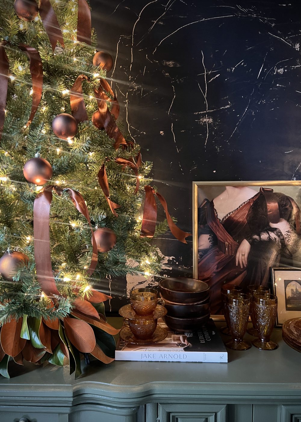 Hi, friends! This was a totally spontaneous project! I honestly didn’t have any plans to add holiday decor to the dining room this year. I think the house is looking pretty festive as is, so I just didn’t think to do more. But, this weekend I was in the basement storage room, and I came across two 4 ft. pre-lit Christmas trees that I hadn’t used, and an idea came to me!